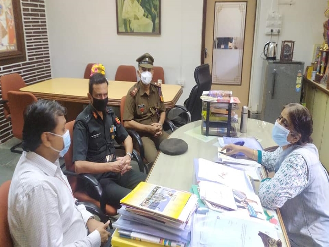 Commanding Officer Col. Manish Awasthi’s meeting with Prin. Veena Sanekar and Vice Prin. Dr Satyawan Hanegave