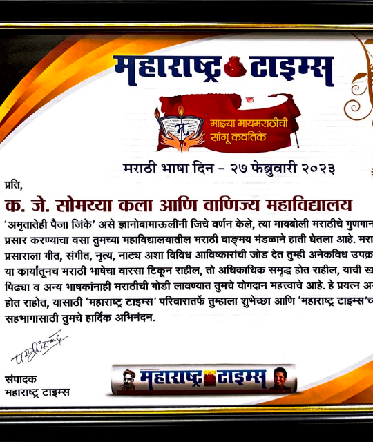 Award from Maharashtra Times for Achievements of Marathi Prabodhan